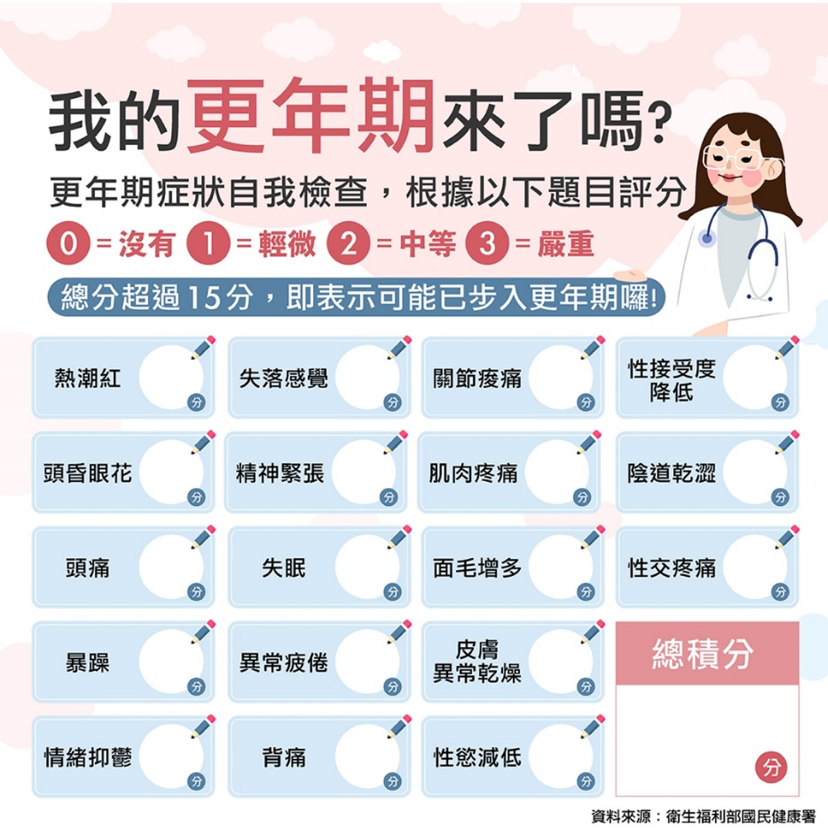 協助檢查「更年期前兆」的表格(感謝國健署)